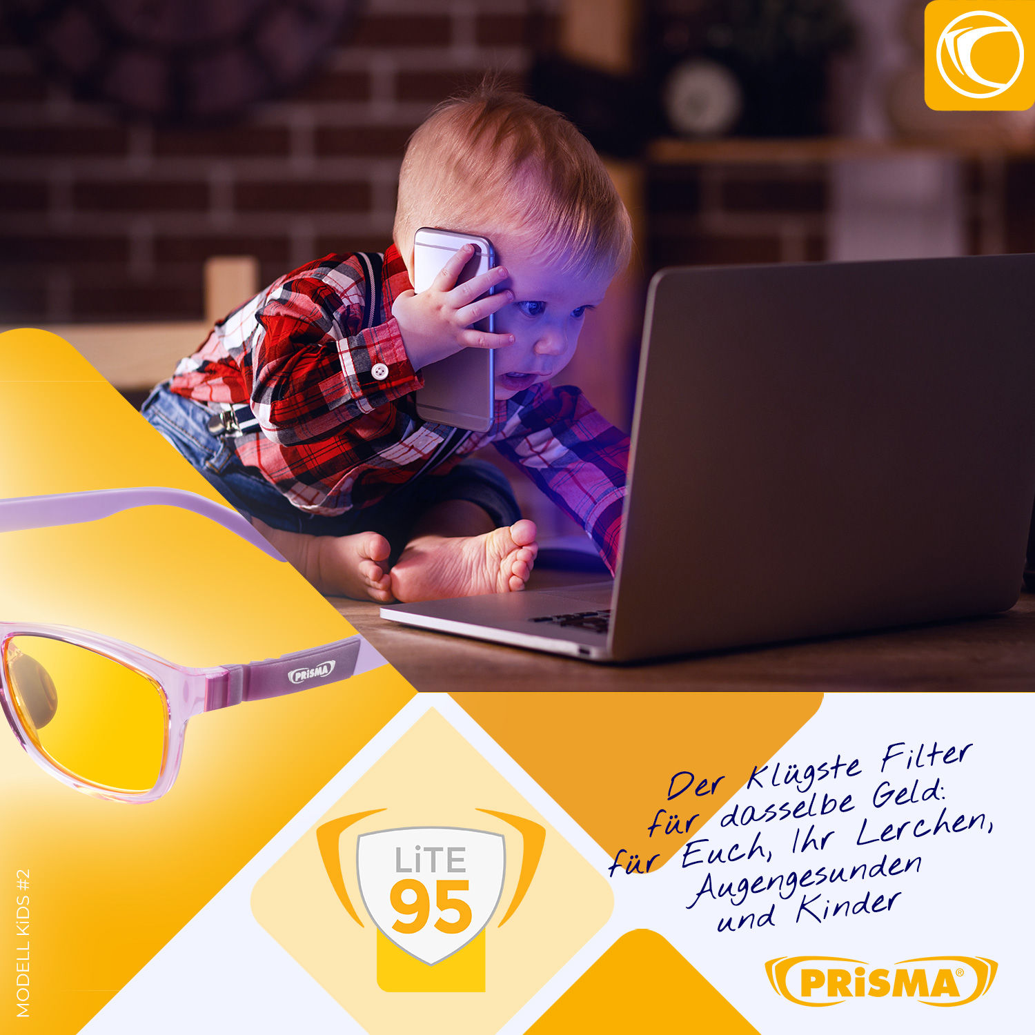 VORTEIL des Modell KIDS#2: Für die meisten Kinder bedeutet die PRISMA Blaulichtschutzbrille nicht eine "lästige" Brille sondern mutiert zum Lieblingsaccessoire viele Kinder. Sie fühlen sich als besonders cool, werden von anderen positiv bestaunt und präsentieren authentisch die "new generation" im digitalen Zeitalter.