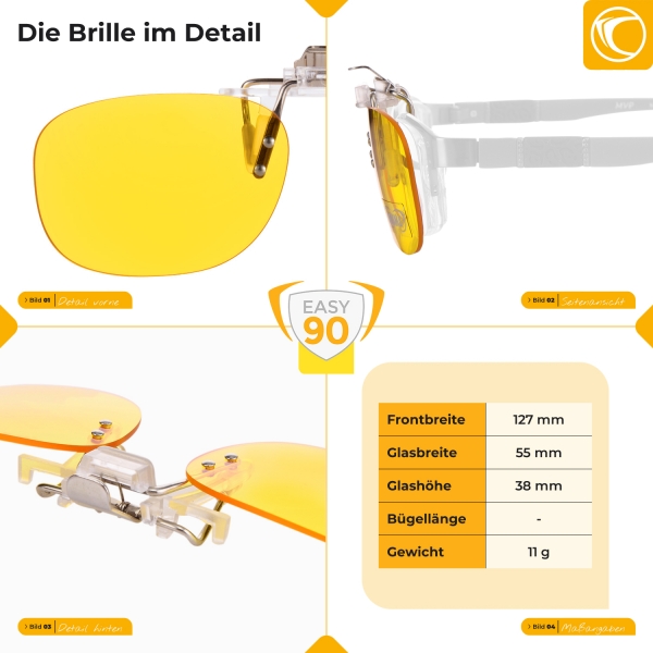 1 Vorsteckaufsatz für Brillenträger mit Blaulichtschutzfilter EASY90 mit Rückseitenentspiegelung